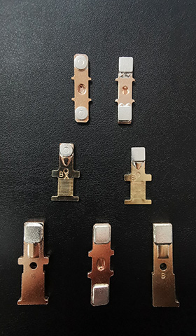 公司立足于環(huán)保型電接觸材料的研究,自主開發(fā)了擁有自主知識產(chǎn)權(quán)的“銀-錫銦復(fù)合氧化物電工觸點材料及其制備工藝”,采用化學(xué)包覆法,成功在"銀氧化錫"材料中添加特殊材料,增強了材料的特殊性能,拓寬了材料的應(yīng)用領(lǐng)域。以 “銀氧化錫銦觸點材料”為核心技術(shù),不斷開發(fā)出了“電接觸線材、復(fù)合帶材、電接觸元件和組件”等一系列多類型產(chǎn)品;核心技術(shù)均獲得發(fā)明專利授權(quán)。